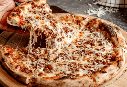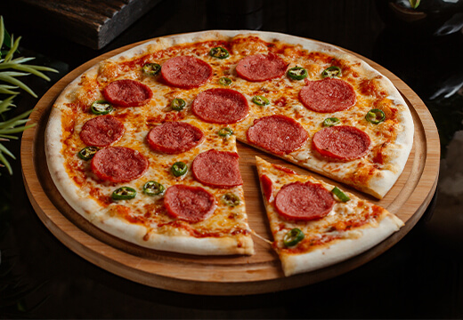 - Molho de tomate, mozzarella, chouriço especial e azeitonas